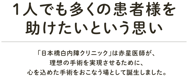 世界的に有名な赤星隆幸医師が理想の手術を実現させるために、誕生いたしました。